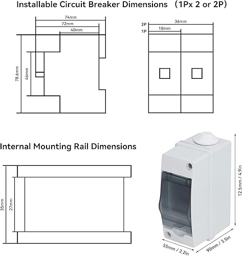 Aufputz Verteilerkasten Hutschiene 1 Reihig 2 Module 125 x 55 x 90 mm IP65 Wasserdicht Verteilerschrank Aufputz Sicherungskasten für Elektrik, Kommunikation