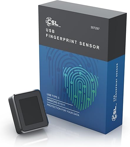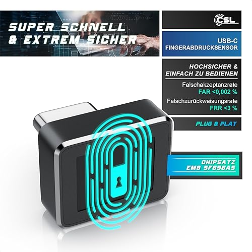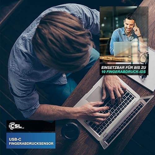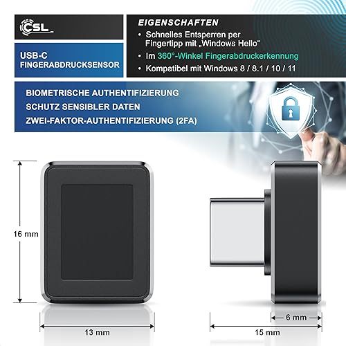 CSL - Fingerabdrucksensor USB Typ C - unterstützt bis zu 10 IDs - Fingerabdruckleser Fingerprint Key Reader - Windows 11 Hello - Plug & Play - PC Notebook Laptop Finger Scanner