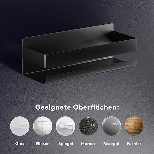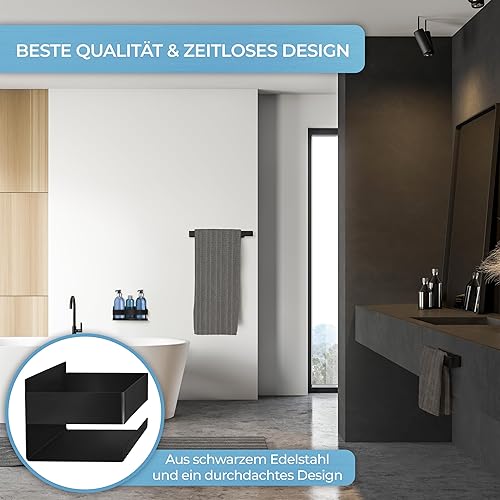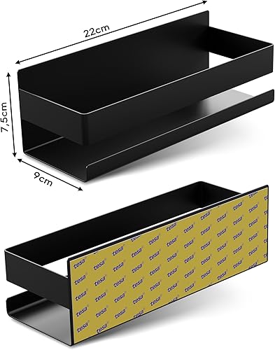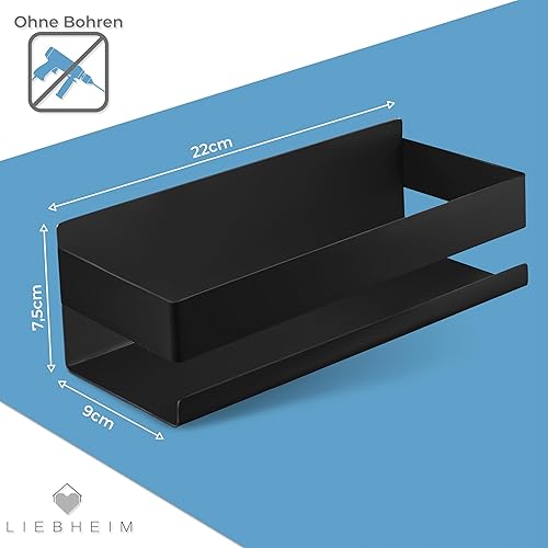 LIEBHEIM Duschablage Duschkorb Badregal ohne Bohren - Bombenhalt durch Industrie Klebeband - Edelstahl S304 - Massiv (Edelstahl Schwarz)