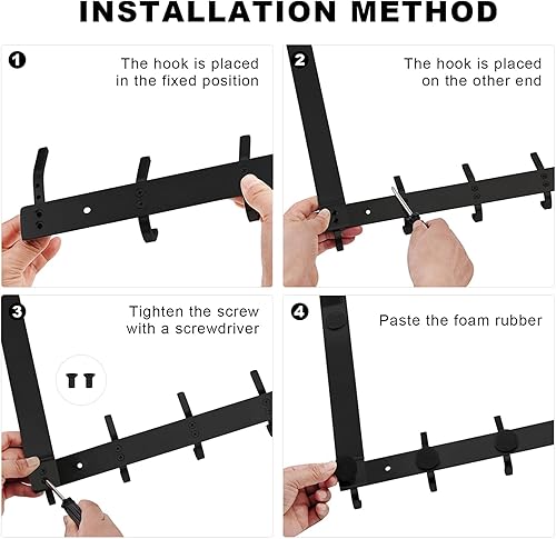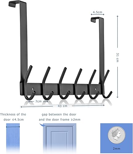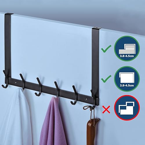 MEIJO Türgarderobe zum Einhängen Edelstahl, Türgarderobe Ohne Bohren Kleiderhaken Tür für Deutsche Türen Türhakenleiste Edelstahl mit 6 Haken für Küche, Badezimmer (Schwarz, Dicke 4,5 cm)
