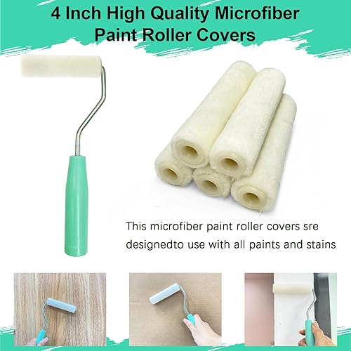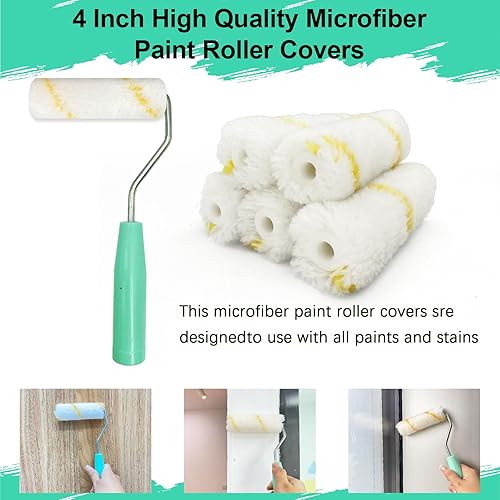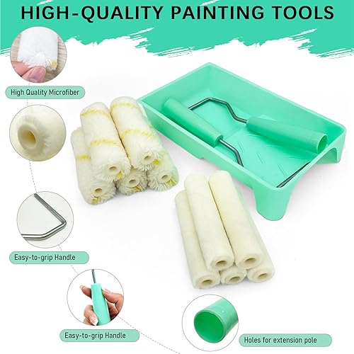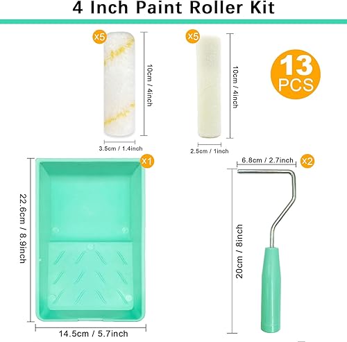 13er Farbroller-Set, 10cm Mikrofaser-Farbroller-Bezüge, Mini-Wollmischung-Farbroller mit Ablage, kleines Farbroller-Pinsel-Set