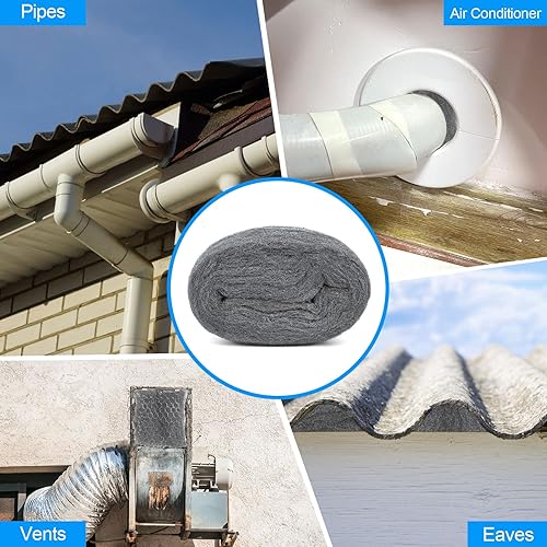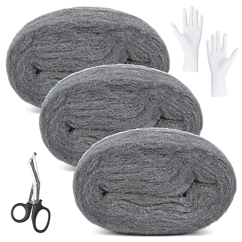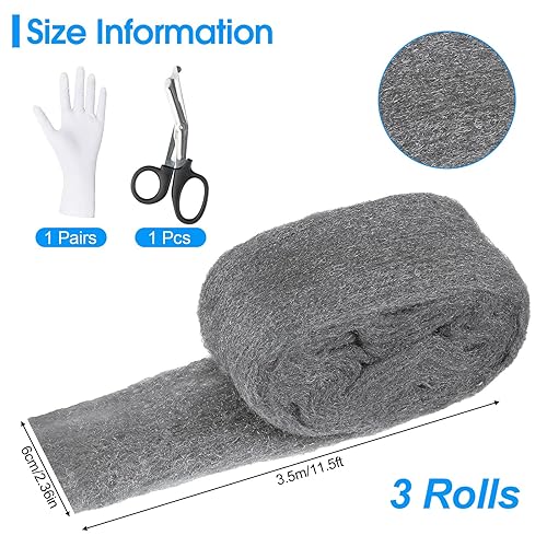 Stahlwolle, 3 Rollen Stahlwolle Gegen Mäuse, 10,5m Stahlwolle 000 Fein mit Arbeitshandschuhen und Schere, für Löcher und Wand Risse von Haus, Garage, Garten und für Reinigen und Polieren