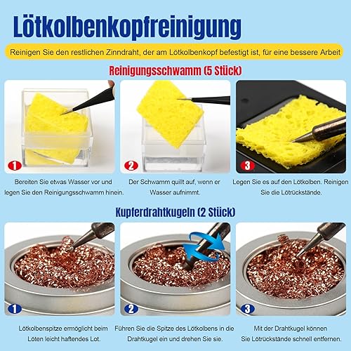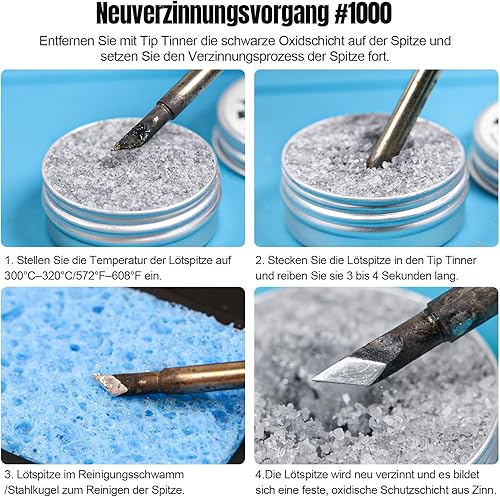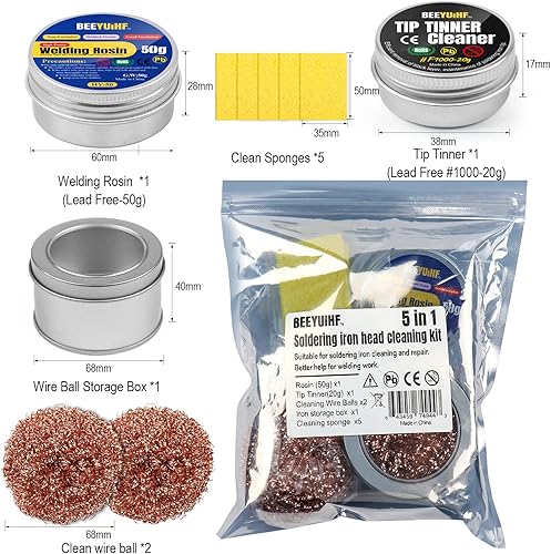 BEEYUIHF Lötspitzenreiniger Set - bleifrei Lötspitzen Reaktivator 16g + Kolophonium Flussmittelpaste (1.76oz/50g) + Lötschwamm Reinigung (50x35x5mm)+Lötspitzenreiniger