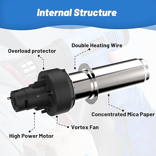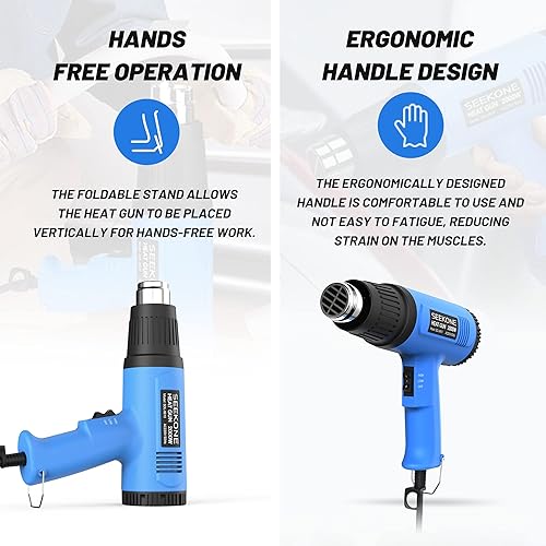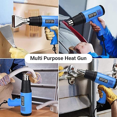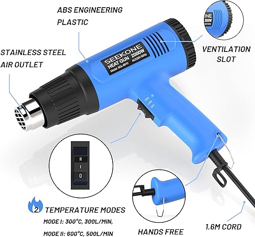 Heißluftpistole, SEKKONE 2000W Elektrische Heissluftgebläse mit Doppelter Heizdraht, 2 Heizstufen von 300ºC/600ºC, 4 Heizdüsen, Überlastschutz, Heißluftfön zum PVC-Schrumpfen, Trocknen, Handwerk