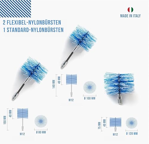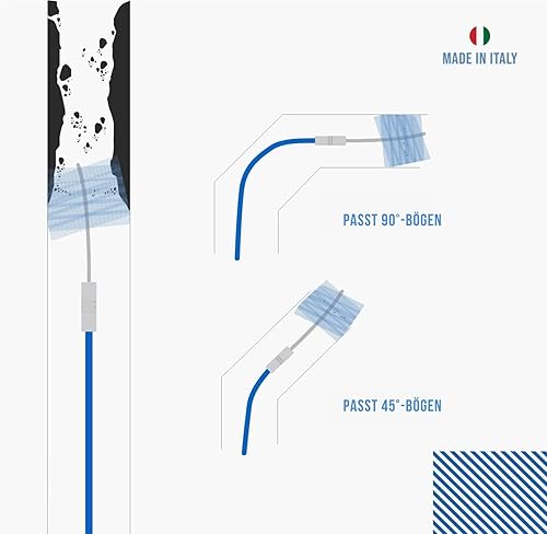 BARETTO Pelletofen-Reinigungsset, 3 Meter Verlängerung für die Pelletofenreinigung mit 90°-Biegung, Set mit 3 Nylonbürsten (2 Flex 80 mm und 100 mm, 1 Standard 120 mm)