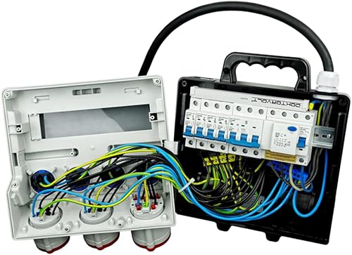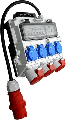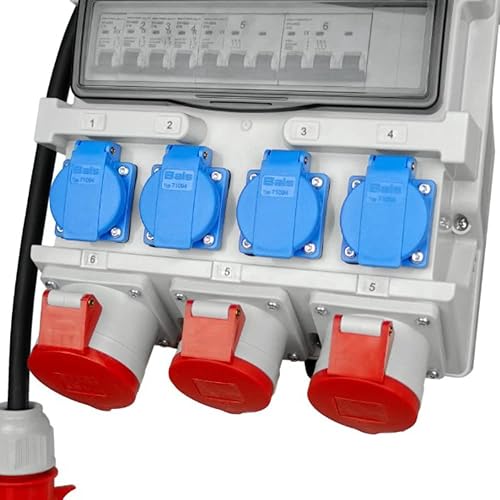 Doktorvolt Stromverteiler mit Bals Steckdosen 4x 230V 2x 16A 1x 32A 400V CEE, LS-Schalter FI-Schalter, Kabel mit Stecker, Baustromverteiler Wandverteiler Mit Leitung Sicherheitsklappdeckeln IP44