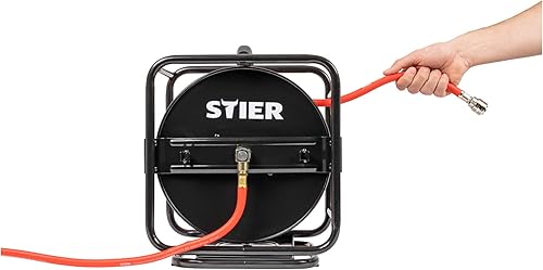 STIER Druckluft Schlauchtrommel inkl. Wandhalterung, Druckluftschlauch SBT-30, max. Druck 20 bar, Ø 8 mm, ausziehbare Länge 30 m, einfaches Aufwickeln