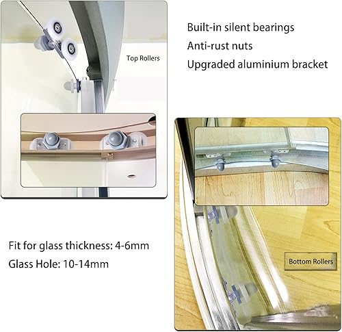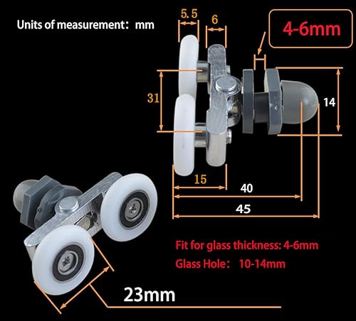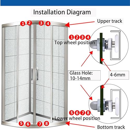 Cokritsm Duschtürrollen 6 Stücke Duschkabine Rollen Laufrollen 25mm, Duschrollen mit Doppelter Schiebetür, Anti-Rost Duschtürrollen für Badezimmertüren Glastür 4-6mm, Glasloch 10-14mm