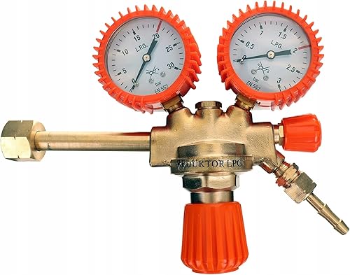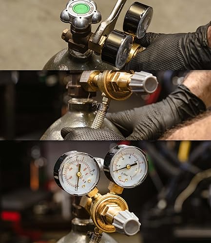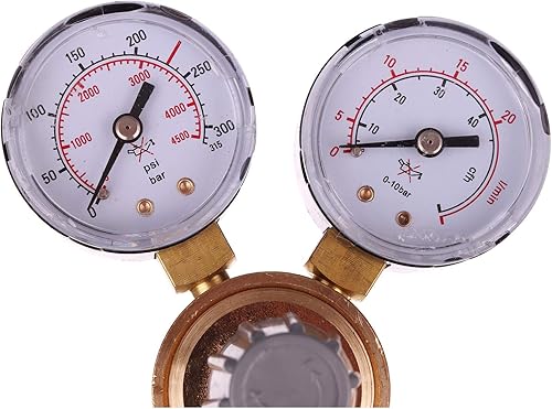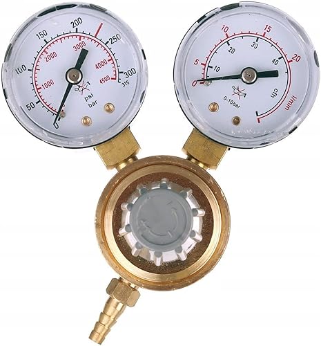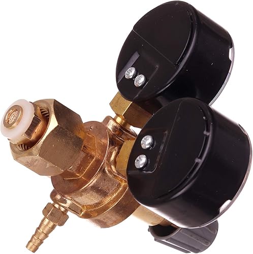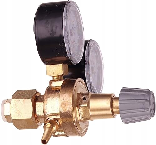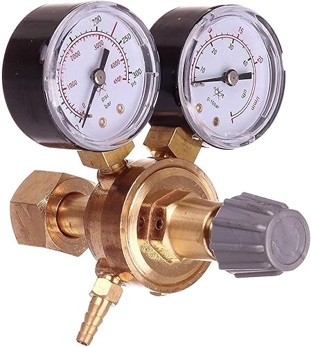 Druckminderer für Gasflaschen mit Argon (Ar) oder Kohlendioxid (CO2), Einlassgewinde B21,8 x 1/14, Auslassgewinde G 1/8 + Schlauchanschluss
