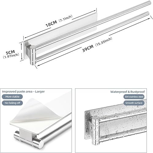OETAMS Handtuchhalter Ohne Bohren Silber 180° Schwenkbar Handtuchstange Selbstklebend Handtuchhalter 304 Edelstahl Badetuchhalter Doppelter Habdtuchhalterung Bad