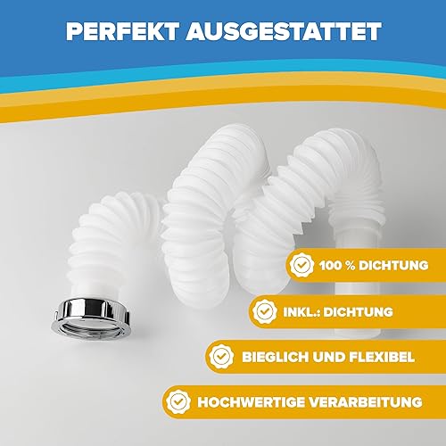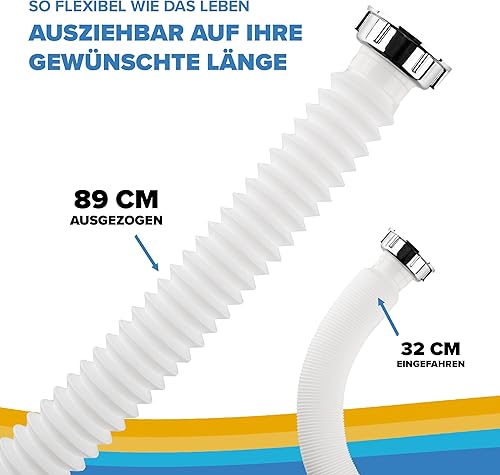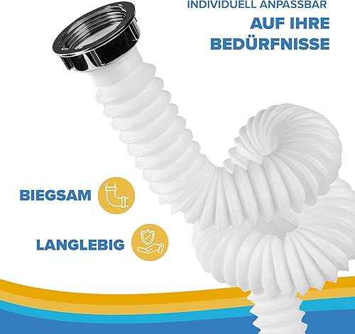 ABFLUSSHELD Flexibler Ablaufschlauch - 1 1/4' x 32mm Flex Siphon Waschbecken - Flexibler Siphon mit ausziehbarem Abflussrohr 32-89cm - Flexibler Ablauf für Waschbecken