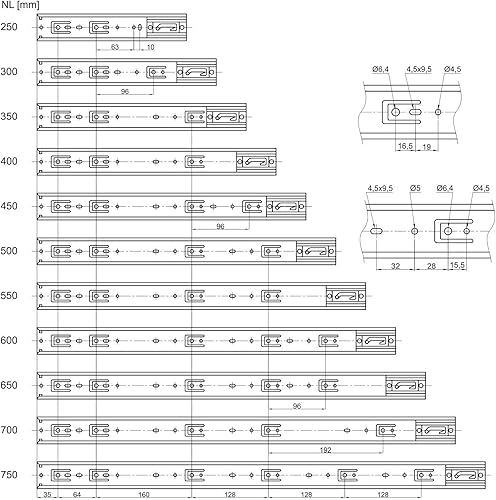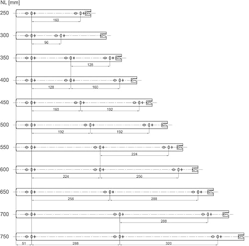 1 Paar Vollauszüge KV2-35-H45-L500-SE mit Selbsteinzug Länge 500 mm Höhe 45 mm Schubladenauszüge belastbar bis 35 Kg von SOTECH dem Spezialist für Schubladenführungen