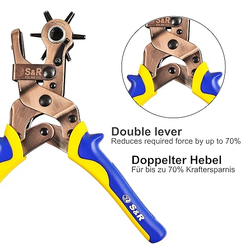 Ergonomische Revolverlochzange aus Kohlenstoffstahl – Präzise Stanzzange mit Rund- und Oval-Locheisen, Größen 2-4,5 mm, für Leder, Gürtel, Schuhe, Sattel, Plastik - ergonomisch
