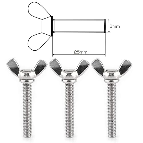 BITEFU 25 Stück Flügelschrauben M6 x 25 Edelstahl Schön und Praktisch Flügelmutter mit Vollgewinde für Displays Haushaltsgeräte Kommunikation