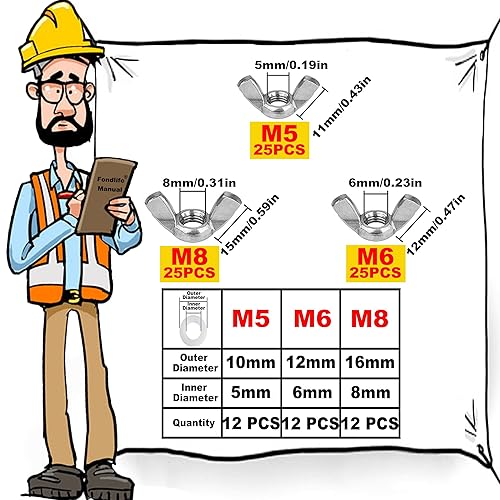 Fondlife Flügelmutter, Edelstahl Flügelmuttern Kit mit Unterlegscheiben Kit, Metric Thread flügelschraube, Hand Schraub Flügelmuttern (111)