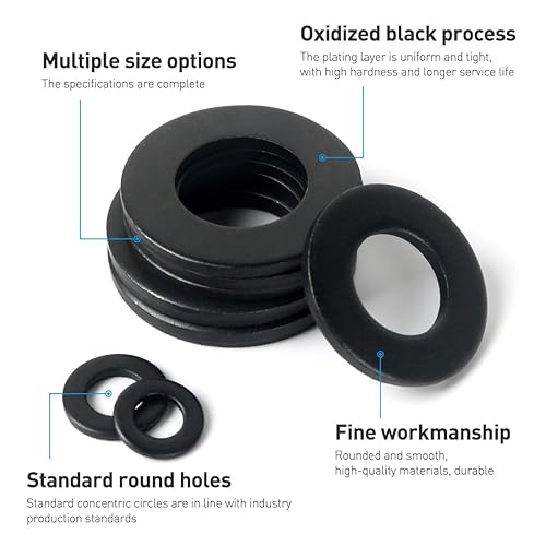 BOUMVID Unterlegscheiben Flache M5 x 10mm, 100 Stück Unterlegscheibe Schwarz Karosseriescheiben Distanzscheiben Kohlenstoffstahl Dichtung Beilagscheiben Distanzringe für Gewindestangen Schrauben