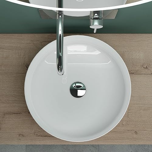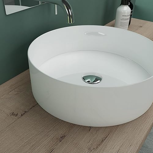 Mai & Mai Waschbecken Aufsatzwaschbecken BTH: 31x31x11cm Waschschale Rund Waschbecken aus Keramik Weiß mit Nano-Beschichtung Brüssel203