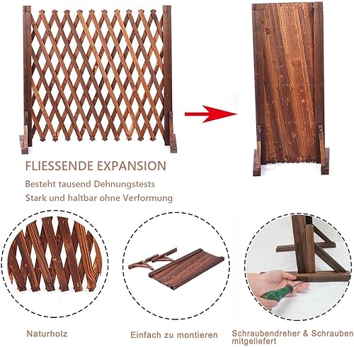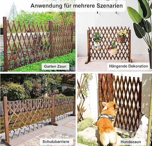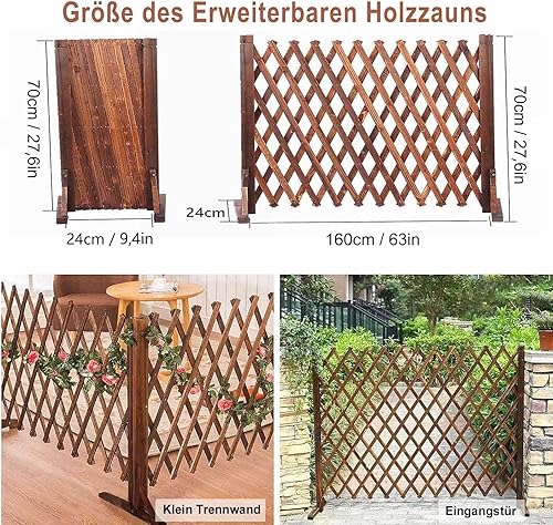 uyoyous 2 Stück Verstellbar Rankgitter Holzzaun Ausziehbar Hunde Zaun bis 160cm Zusammenfaltbar Variabel Ausziehbares Treppenschutzgitter, Scherenzaun Kletterhilfe, Freistehend Garten Balkon Terrasse
