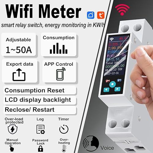 TONGOU Stromzähler Smart Hutschiene Wlan | 1P 50A/230vac Zeitschaltuhr Hutschiene Smart Lcd Display | wlan Schalter Zähler via Tuya Smart life| KWh-Prepaid-Funktion