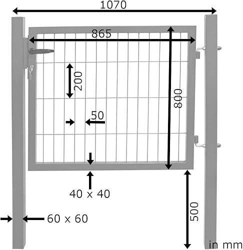 V2Aox Gartentor Tor für Gartenzaun Garten Zaun 80 cm hoch Gartentür aus Metall für Stabmattenzaun Abschließbar inkl. Pfosten Anthrazit