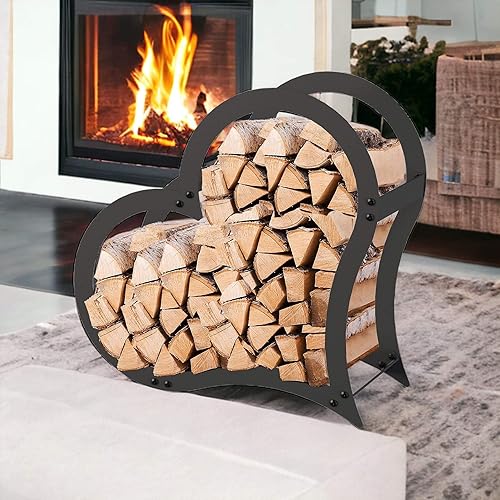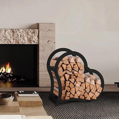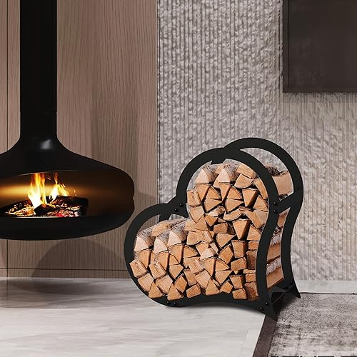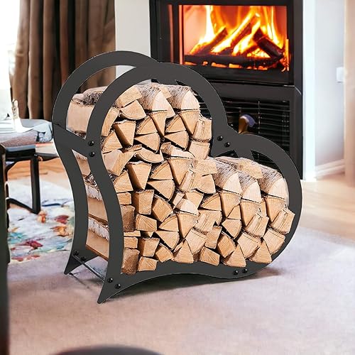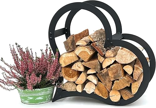DanDiBo Kaminholzregal Innen Metall Schwarz Stehend Herz 52 cm Kaminholzständer 96469 Kaminholzhalter Brennholzregal Feuerholzregal