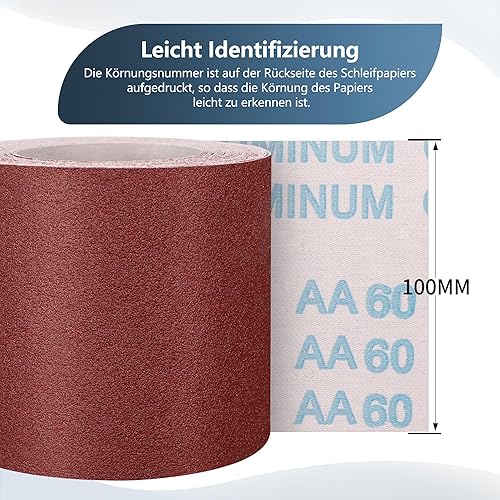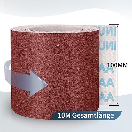 ZEHIQ Schleifpapier Rolle, Schleifpapierrollen Körnung 180, 100 mm x 10 m Schleifleinen Rolle für Handschleifer, Schwingschleifer, Schleifpapier für Holz, Metall, Farbe