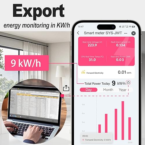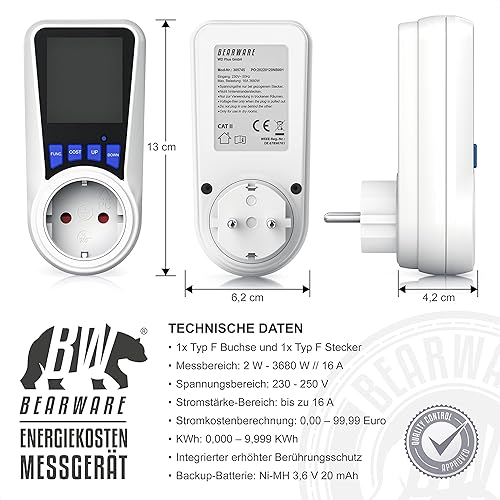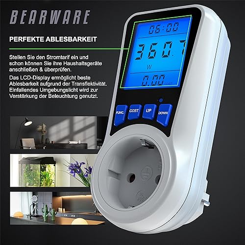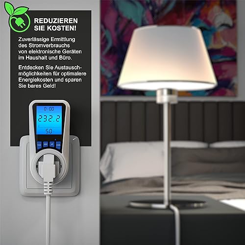 CSL – Energiekostenmessgerät Stromkostenmessgerät Stromverbrauchszähler – Display mit Hintergrundbeleuchtung – max. 3680 Watt – 4 Tasten – Strommesser/Stromzähler für Steckdose