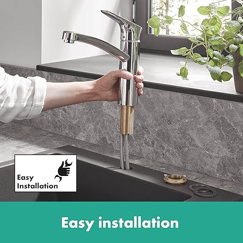 hansgrohe Küchenarmatur MyCube, Wasserhahn Küche mit Auslauf Höhe 160 mm, wassersparend, 360° drehbar, 1 Strahlart, Chrom