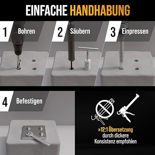 PROCREA® -NEU- 3x Injektionsmörtel 'Ankerfix' [inkl. 6x Premium-Mischern] Hochleistungs Montagemörtel & Verbundmörtel für mittlere Schwerlasten - 2K Klebedübel & Flüssigdübel für innen & außen