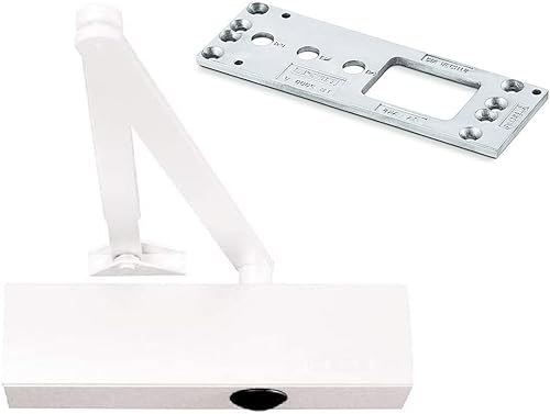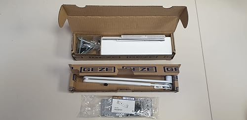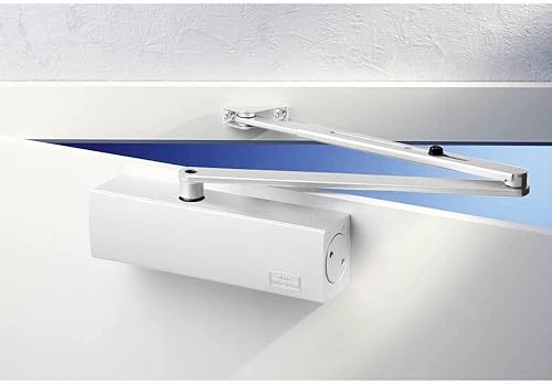 GEZE Weiß TS 2000 V BC Gestängetürschließer für einflügelige Türen bis 1250 mm Flügelbreite mit Gestänge und Montageplatte / Set 3 in 1, White