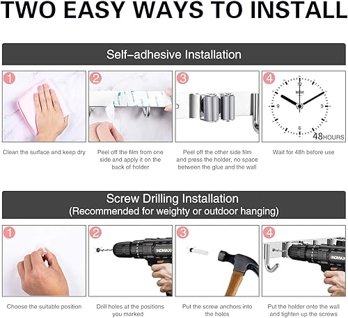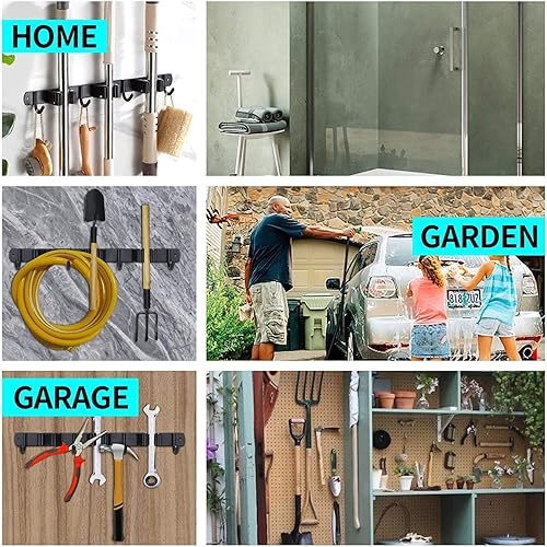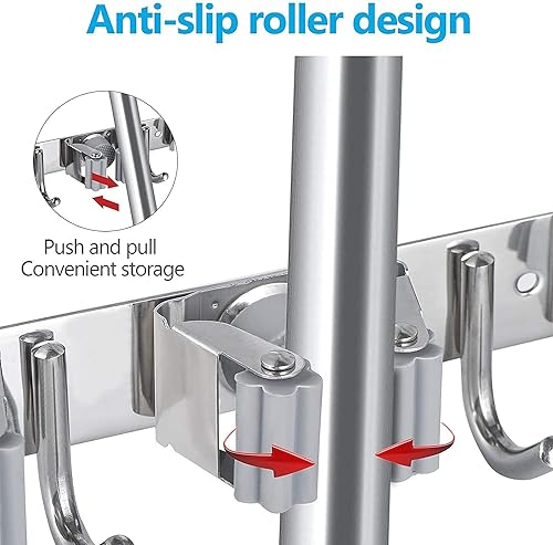naspiweiya Aufhänger und Organizer, Edelstahl, Organizer für Besen und Wischmopps für Zuhause, Küche, Garage (4 Positionen und 5 Haken)