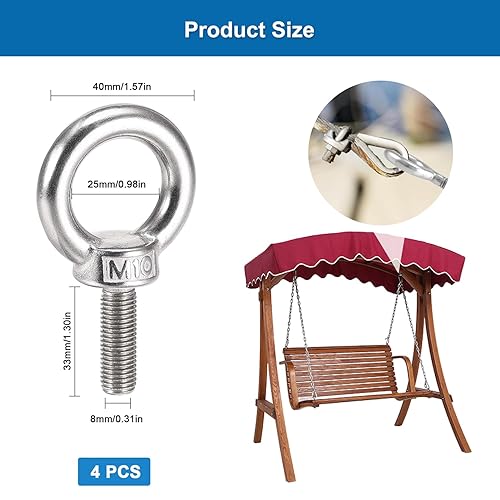 4 Stück Ringschraube M10, Ösenschraube Edelstahl 304, Augenschraube mit Unterlegscheiben, Rostfrei Ösenschraube M10*30mm, schraube mit Öse, Schraubösen Edelstahl für Rolle des Befestigens und Hängens