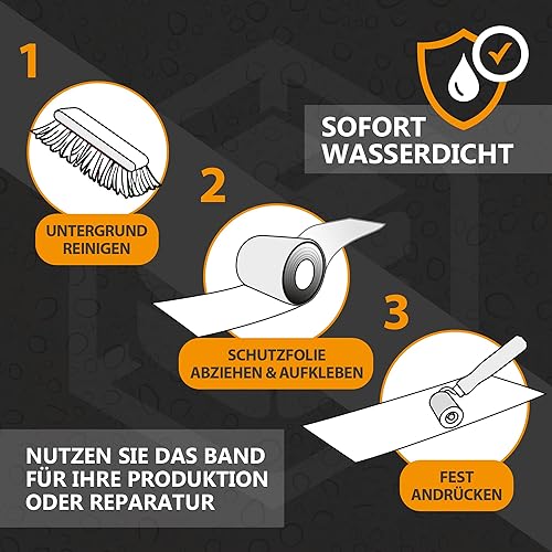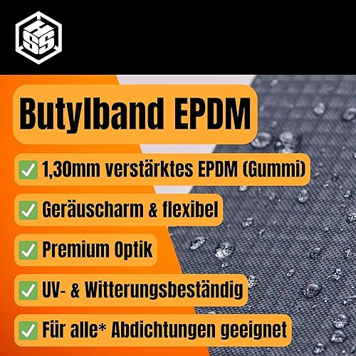HSS Butylband EPDM Oberlage gewebeverstärkt (10cm x 5m), Abdichtungsband, wasserdichtes Klebeband, Hochwertiges Dichtband mit EPDM, Butylband, Alterungs -, Korrosions - und UV - beständig