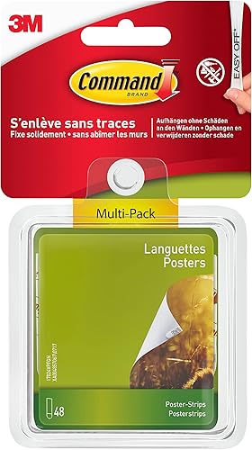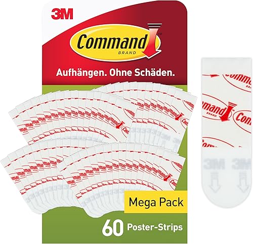 Command Poster-Strips Selbstklebend, Vorteilspack, 60 kleine Klebestreifen, Weiß - Poster, Fotos, Plakaten, Kalendern oder Bilder ohne Rahmen Aufhängen