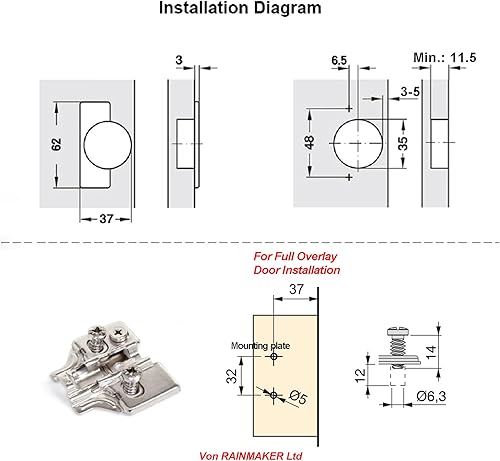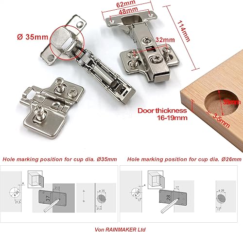 LOOTICH 110 Grad Eckanschlag 35mm Soft Close Hydraulisch Scharniere Scharnier mit Integriertem Dämpfer Topfscharnier Küchenschrank Kleiderschrank Schranktür Möbel 8 Stück