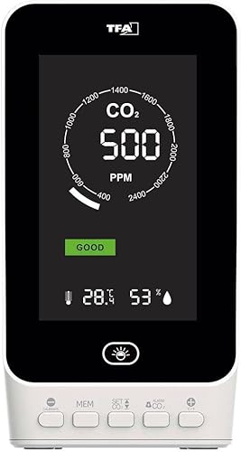 TFA Dostmann CO2 Messgerät AIRCO2NTROL UP, 31.5010.02, Luftgütemonitor, NDIR Dual Beam Sensor, Alarmfunktion für CO2 Konzentration, Raumklimaüberwachung, weiß