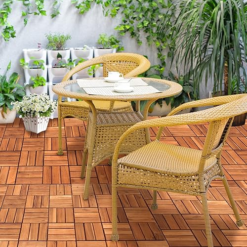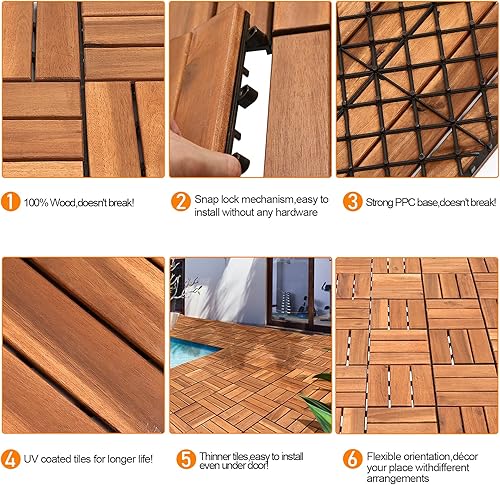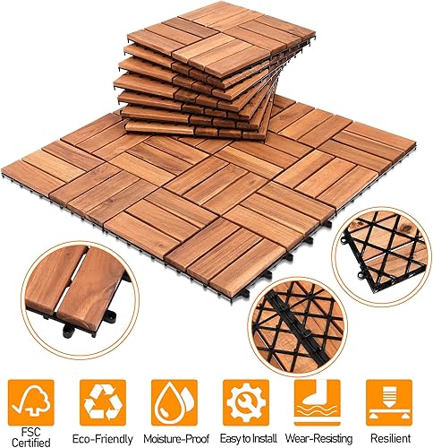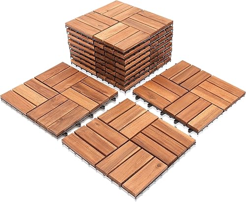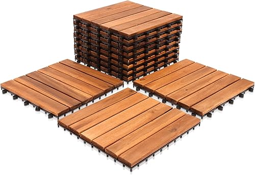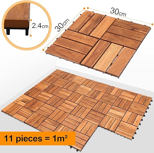 SWANEW Holzfliesen 11-er Kachel Set,1m², geeignet als Terrassenfliesen und Balkonfliesen, aus Akazien Holz, 30x30 cm, für Garten Terrasse Balkon