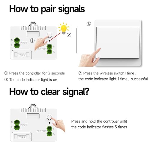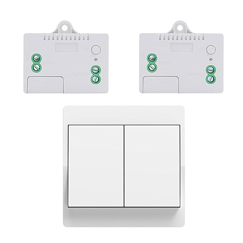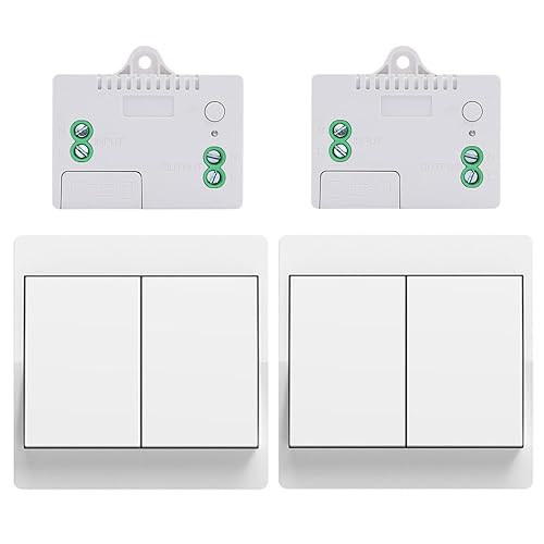 Cerhot funk lichtschalter 2er set outdoor funkschalter 230v funk lichttaster funk-wandschalter funkschalter fernbedienung batterielos kabellose lichtschalter funktaster für lichter (EU 1Gang 2V1 A)