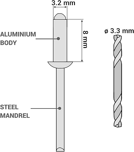 SKIR'CO (100 Stück) Lackierte Blindnieten 4,0 x 10 mm Aluminium Blindnieten DIN 7337 Kuppelkopf Stahldorn Popnieten (Anthrazitgrau RAL 7016)