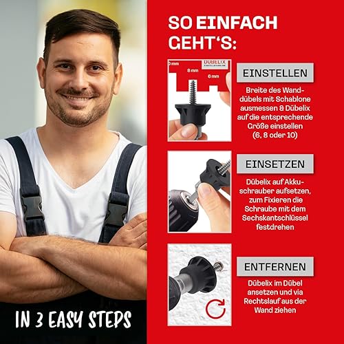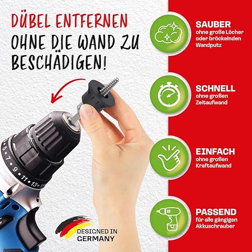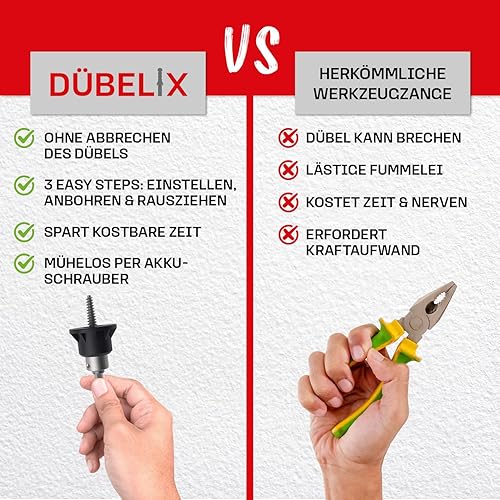 Dübelix Dübelentferner-Aufsatz | Entfernt Dübel rückstandslos - ganz ohne Wandschäden ! | Passend für jeden gängigen Akkuschrauber | Einfach und ohne handwerkliche Vorkenntnisse anwendbar