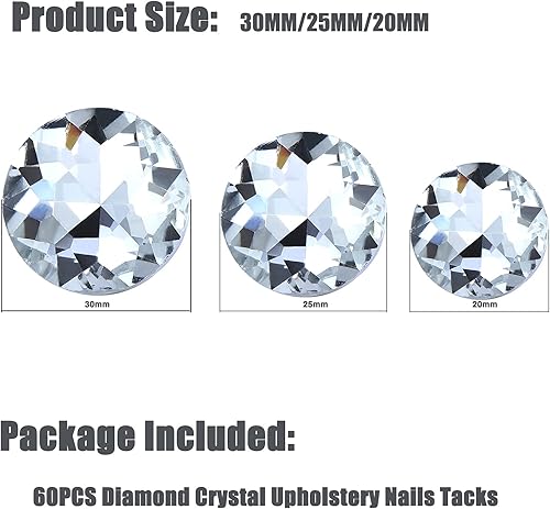 Kyrio 60 Stück Strass-Nähknöpfe, Diamant-Kristall, Polster, Nägel, Reißzwecken, Sofa, Wand, Basteln, Dekoration, 25 mm