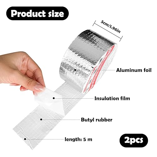2 Stück Butylband Dichtungsbänder 5cm x 5m,Selbstklebend Wasserdicht,AluFolie Wasserfestes Klebeband,Dach Dachrinnen Reparaturband,Dichtband Zur Verwendung an Löchern Rohren Dächern Wohnmobilen