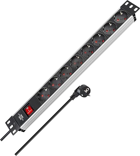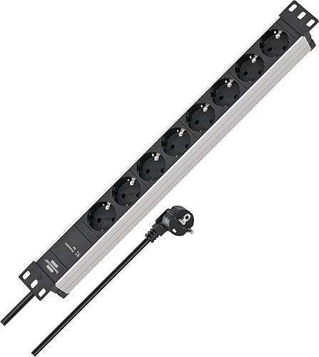 Brennenstuhl Alu-Line Steckdosenleiste 8-Fach mit Überspannungsschutz (Steckerleiste in 19 Zoll Format und mit 2m Kabel)