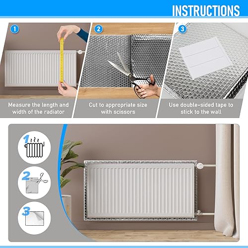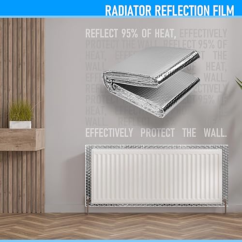 TIHOOK Aluminisierte Isolierfolie, 5m x 0,6m x 3mm, Isolierfolie Dämmfolie, Thermofolie, Isolierung Hinter Heizkörper, Reflexionsfolie für Heizkörper