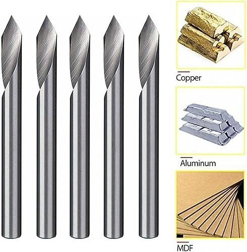 60 Grad V Nut Gravurwerkzeug Flachboden CNC Spiralfräser 1/8 Schaft Klinge Hartmetall Wolframstahl Gravurwerkzeug für CNC-Schnitzereien 5 Stück