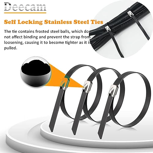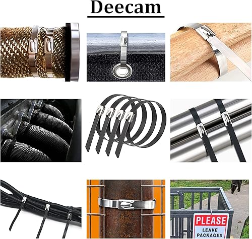 100 Stück Edelstahl Kabelbinder, Deecam 300x4,6 mm Kabelbinder Metall,125kg Zugfestigkeit, uv Beständig, Abnehmbar, für Auspuffaufwicklung, Kabelbündelung, Gartenpflege, Fester Zaun und Markise
