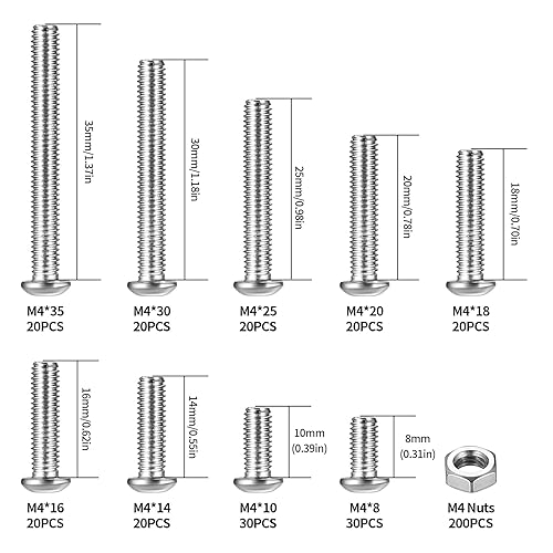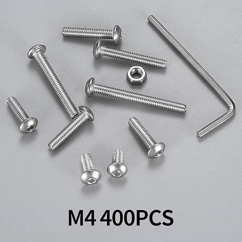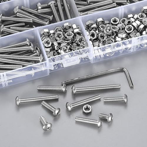 400 Stück M4 Schrauben Set, Schrauben und Muttern aus Edelstahl mit Gewinde, Rundkopf Innensechskant Schrauben mit Muttern Sortiment Set, Sechskantschrauben Maschinenschrauben Kit