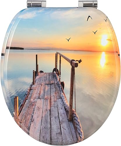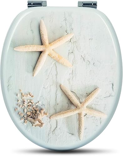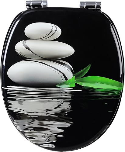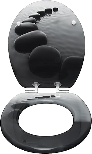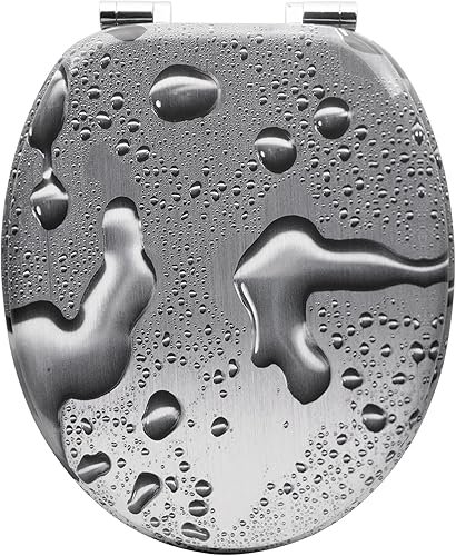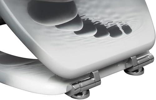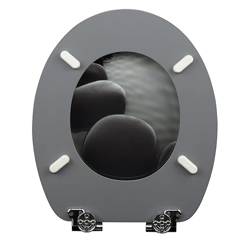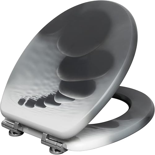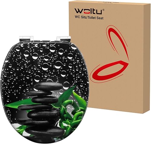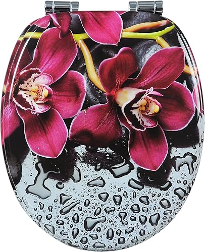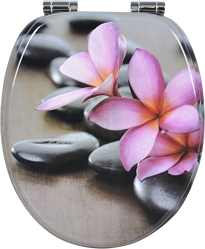 WOLTU #2 Premium WC-Sitz Toilettensitz mit Absenkautomatik, MDF Holzkern, Softclose Scharnier, Antibakteriell, Desgin Décor A Blume Graue