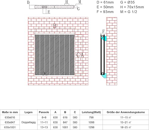 ELEGANT Paneelheizkörper Horizontal 630 x 616 mm Weiß Badezimmer/Wohnraum Einlagig Horizontal Heizkörper Badheizkörper Design Flachheizkörper