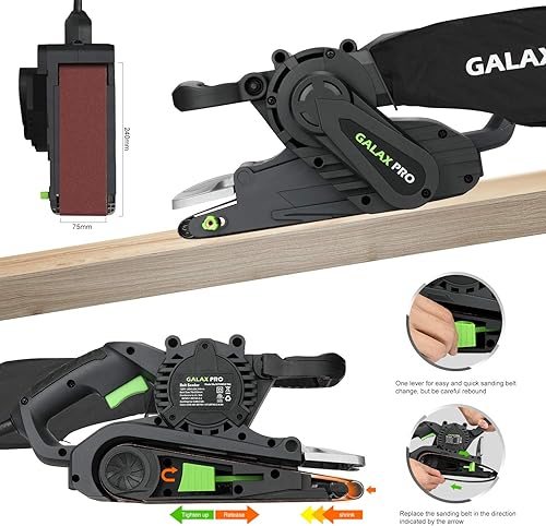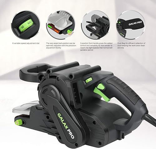 GALAX PRO S1T-SW19-76A Bandschleifer mit Drehzahlregelung & Staubsaugeranschluss, inkl. Staubbeutel & Schleifband, 1010W Schleifmaschine mit 533mm x 76mm Schleiffläche